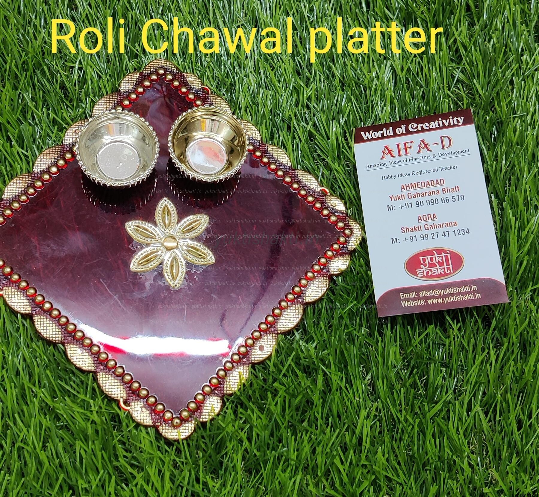 Acrylic Kumkum Chawal platter in golden & red theme