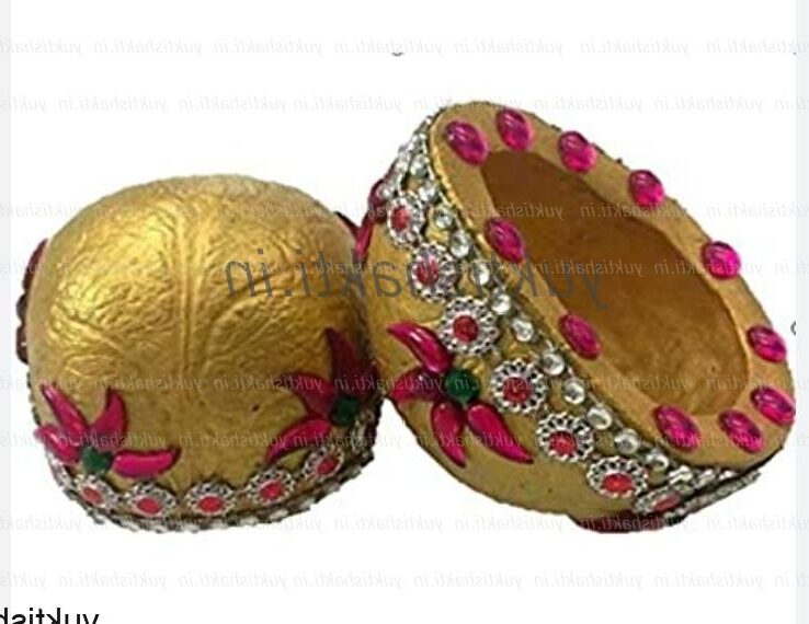 Supari and decorated dry coconut are always available to give your trousseau a unique flair. Theme-based Nariyal/Shreefal can also be a thoughtful and presentable idea. Lotus, Doli, Dulha Dulhan, Peacock, Ganpati, Shivling, Dholak, Tabla, Bijna Bijni, and other designs are among the many available.