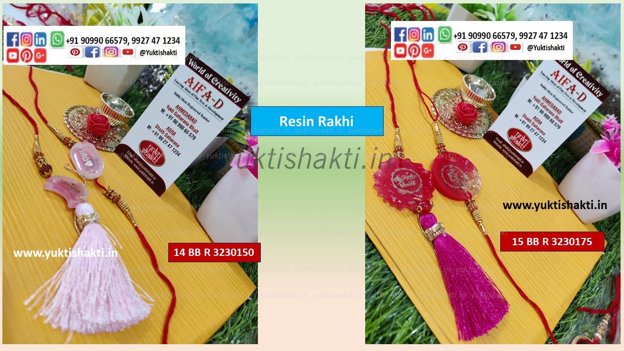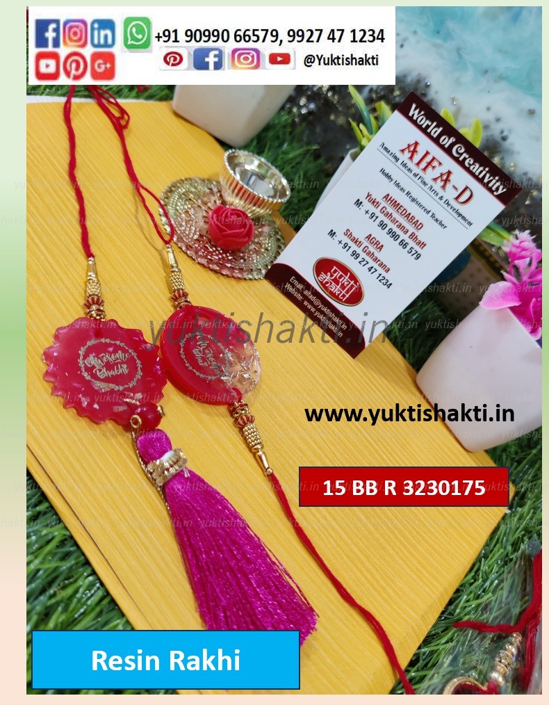 AIFAD Couple Resin rakhi is the combination of the priceless beauty of Red for all time. The centerpieces have very thin cranky foil pieces in red and golden tones that are enclosed in resin. Bhai n Bhabhi is written in golden color. The bhabhi rakhi adds glitz with enamel red blossoms and tassels, while the bhaiya rakhi highlights this item with pearls. Soft Red yarn is used to tie both.