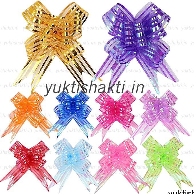 Pull Bow Large Organza/Plastic Pull Bow Gift Wrapping Pull Bow with Ribbon for Wedding Gift Baskets, Gift Wrapping, (Color/size as per Availability of stock)