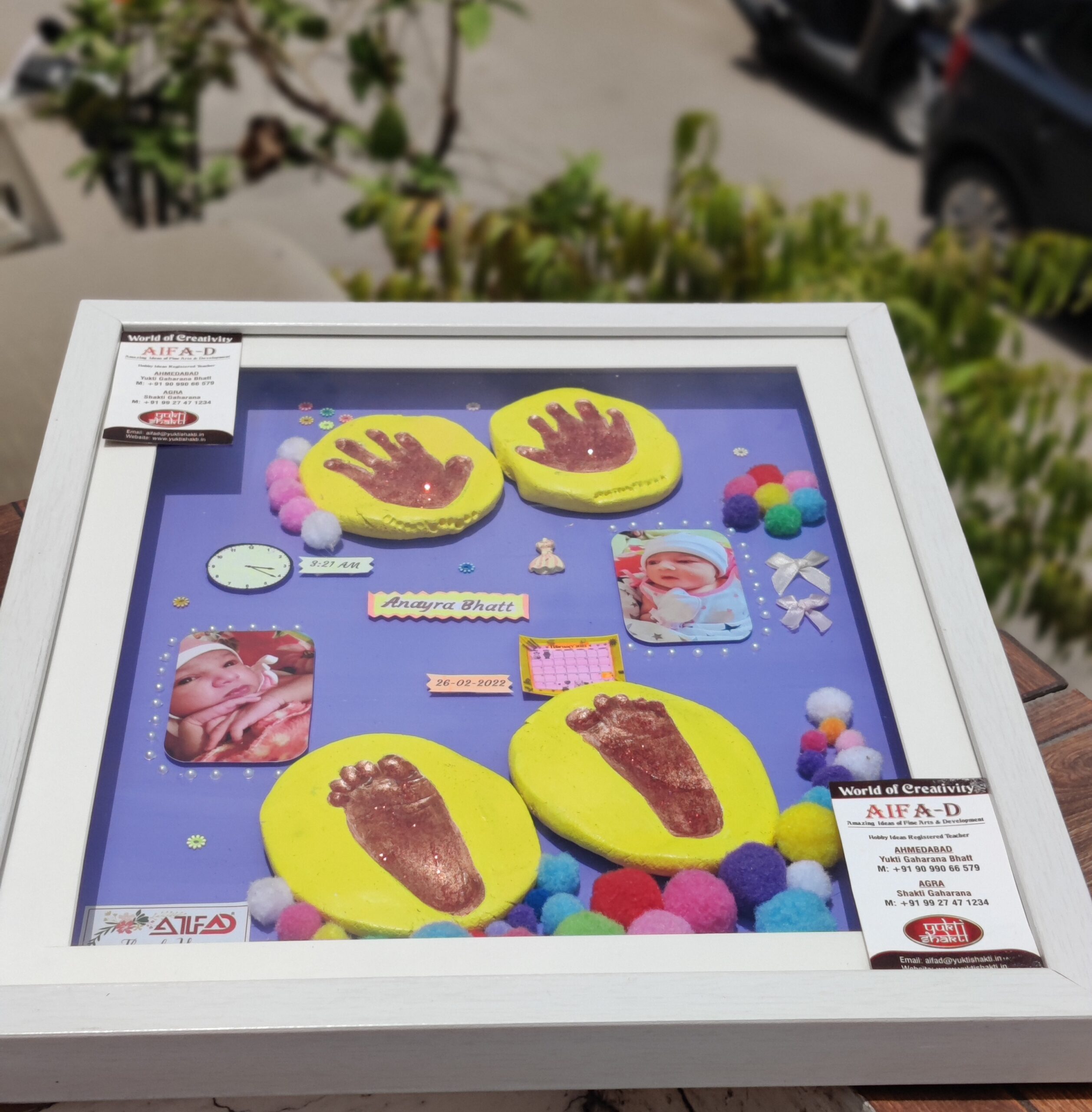 AIFAD Hand Crafted Baby Clay Hand Foot with Frame, Decorative Accessories, Name and Number Stickers and Lights| Gift for Baby Boy and Girl | Baby Gifts | Baby Shower Gift | New Parents Gift| Baby Naming | Baby Welcoming | First Birthday Gift | Memorable Keepsake | Unique