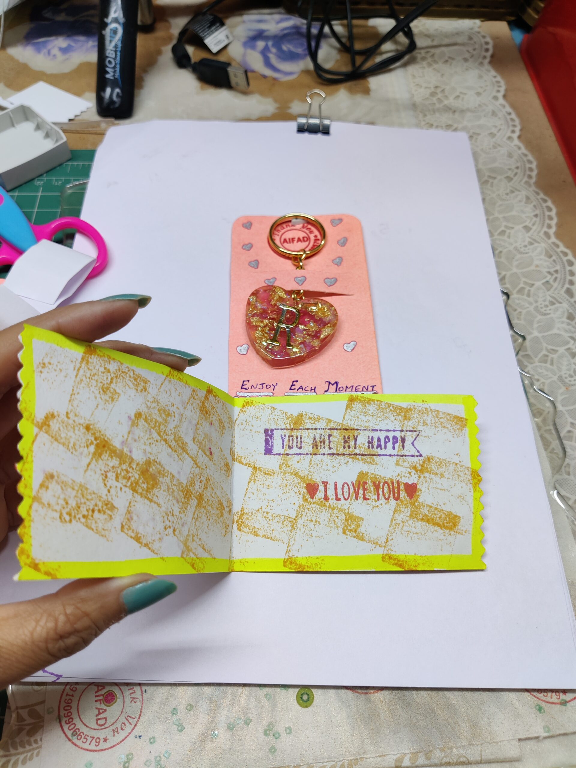AIFAD Handcrafted Heart Shape Lovely RESIN Keychain to gift to your loved ones with dried rose petals inside.