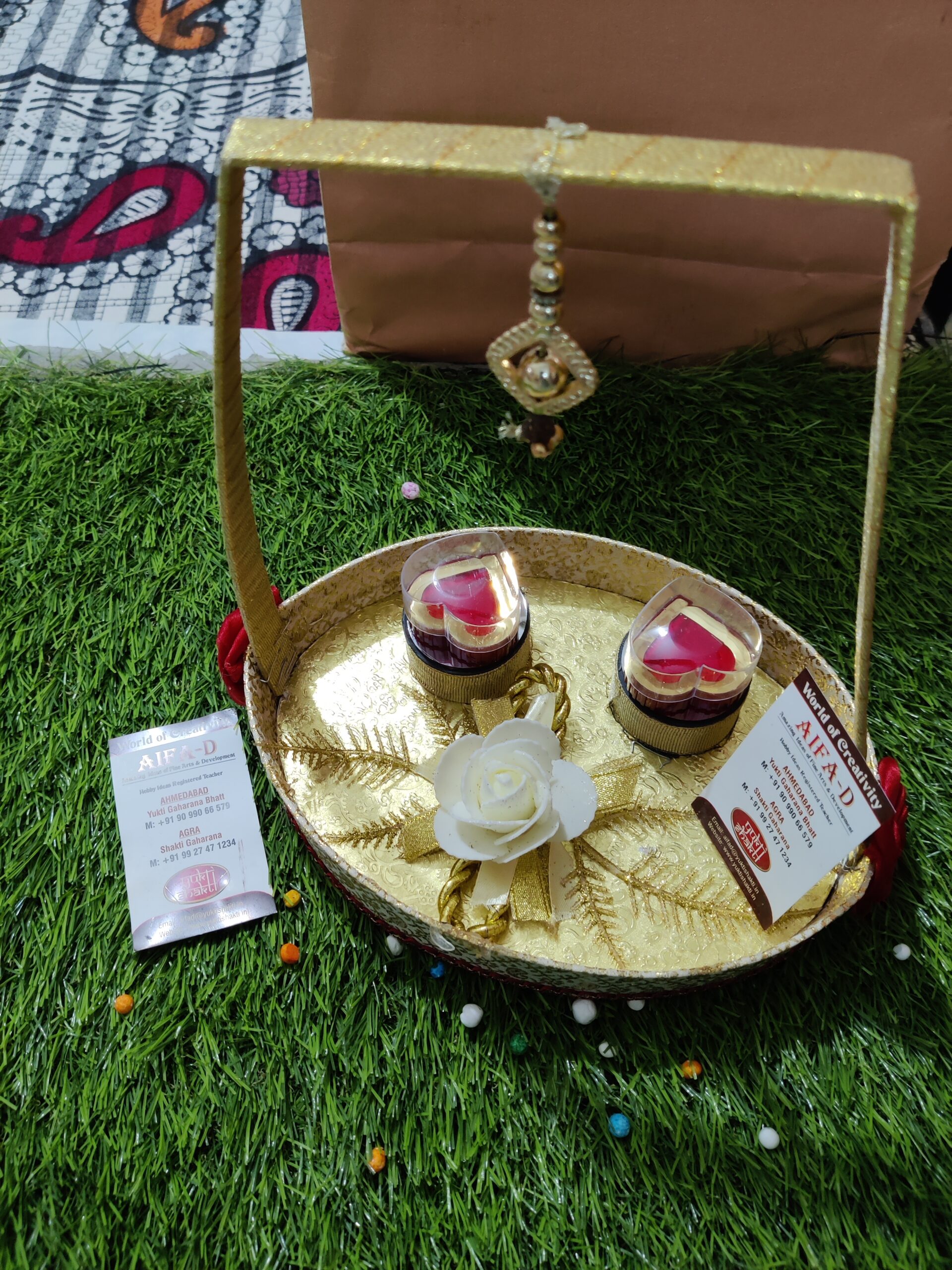 - Fully decorative with marble Ganesh Ji, roses, and also attached 2 ring holders to hold your rings.
