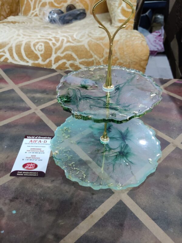 Quality and Material: This Cake Stand are made up of Epoxy, Pigment, gold flakes, Metalic gold Sketch pen for outline, Made in resin molds, 100% Waterproof and Washable, long lasting and Durability.